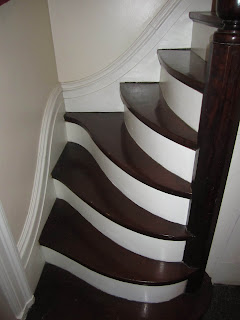 The main stair at 7 East 91st Street was a ceremonial - nay, "triumphal" - route from front door on one to the ballroom on three. It enhanced the day to day life of Mr. and Mrs. Burden on two but stopped on three. The image below shows the stair to the childrens' rooms on four, where I'll wager parents rarely ventured. While handsome it is modest by comparison.