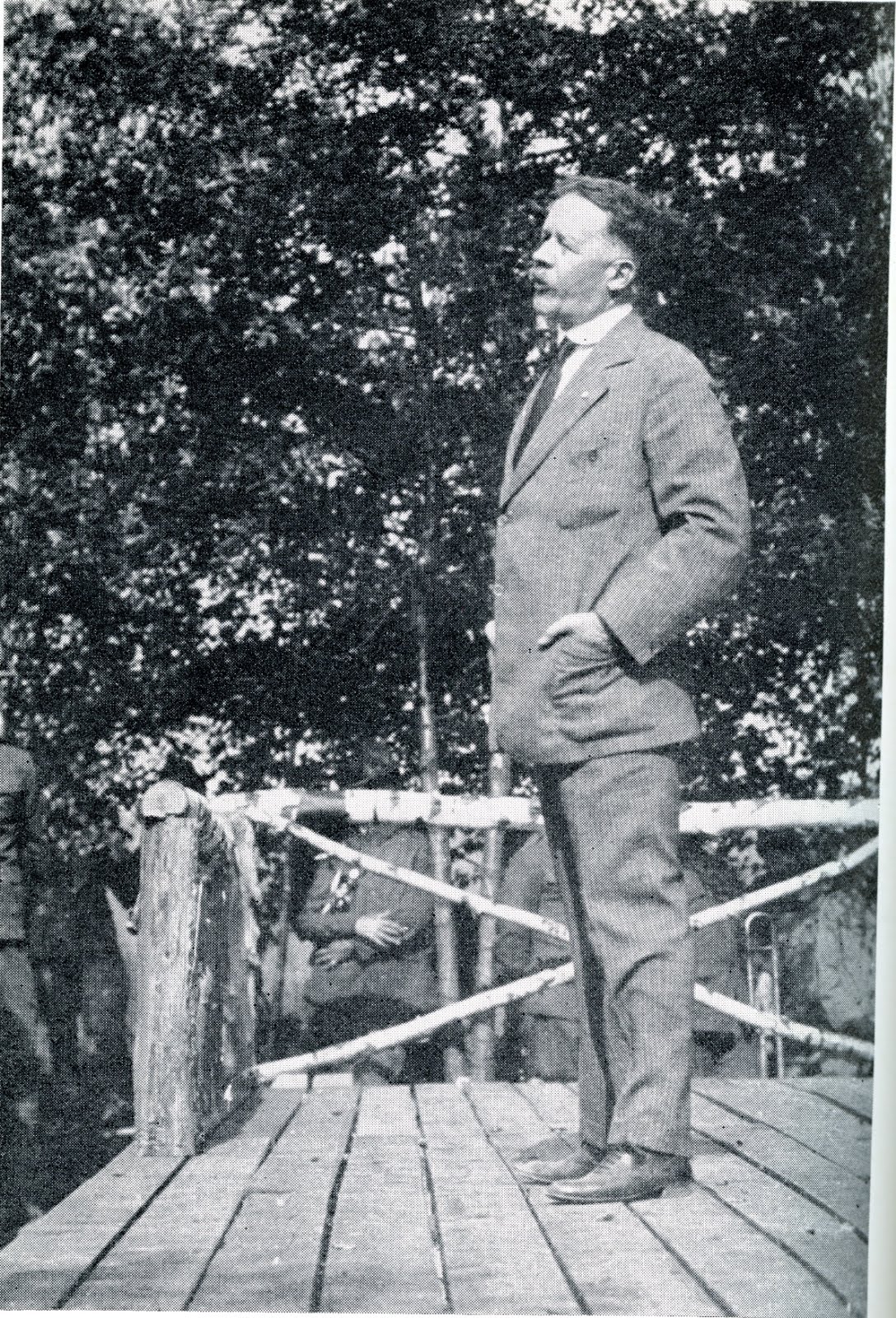 In 1895, Harriman sold his place in Riverdale, moved to Mt. Kisco, declined into dottiness, was declared incompetent by the courts and died in 1904 leaving a $20 million estate. Meanwhile, Nonesuch became Glyndor, a combination of the names of its new owner George W. Perkins (seen below, 1862-1920), his wife Evalina (whom I assume they called Lynn) and their daughter Dorothy. Perkins was a remarkable man, as successful in business and banking as he was influential in conservation, women's rights and child labor laws. He died at 58, an anniversary I myself passed a ways back with considerably less eclat.