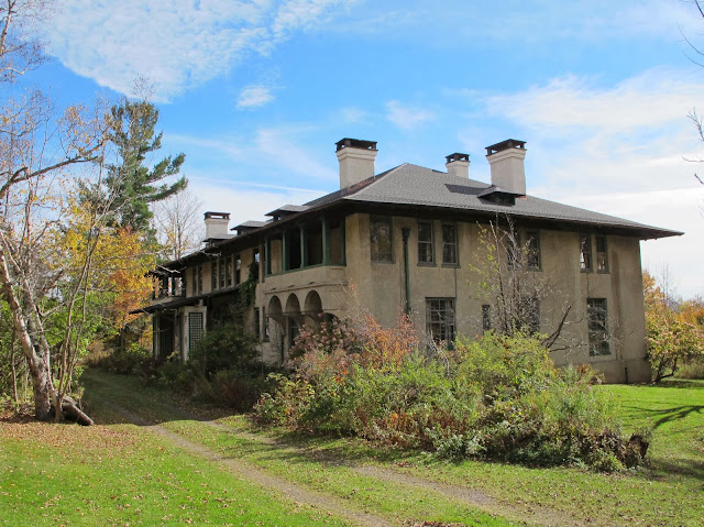 I suppose there's nothing that unusual about Hathaway, the name attached to a large, Delano & Aldrich designed, Catskill Mountain summer house on the outskirts of Onteora Park, NY. Local legend attributes its construction (or construction of the wall in front of it, depending on the version you hear) to a spoiled wife. Offered the choice of a European tour or a big summer house (or a wall in front of it) the wife chose the tour. She then secretly had the house (or the wall) built while she and her husband were away. Presented upon arrival home with a fait accompli, the indulgent husband described his wife as a woman who always "hath her way." (Get it? 'Hath her way'...'Hathaway?') I've spent enough time around rich people to say with authority that if there's one thing they pay very close attention to, it's their money. I don't know if this story is charming or simply ridiculous. It may contain a kernel of truth somewhere, but one kernel is probably the extent.