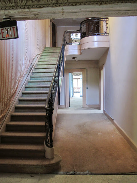 Gigi tells me the garage, also built in 1916, was designed by W.D. Blair. Could this be Walter Dabney Blair (1878-1953), a Beaux Arts trained Fellow of the American Institute of Architects, resident of Tarrytown with an office in New York, designer of office buildings in Nashville, college halls at the University of Virginia and the beautiful (if you ignore the new wing) Warner Library in Tarrytown? Blair doesn't sound like the sort of guy you'd have do your garage, and then go and hire someone else to design a new classical entrance to your house, plus a suite of luxurious interiors beyond. But...compelling as this logic may be (at least to me), I'm hypothesizing without citations.